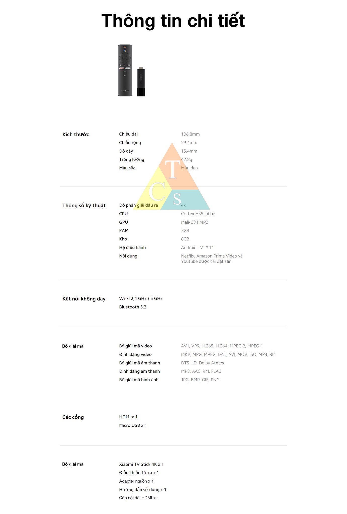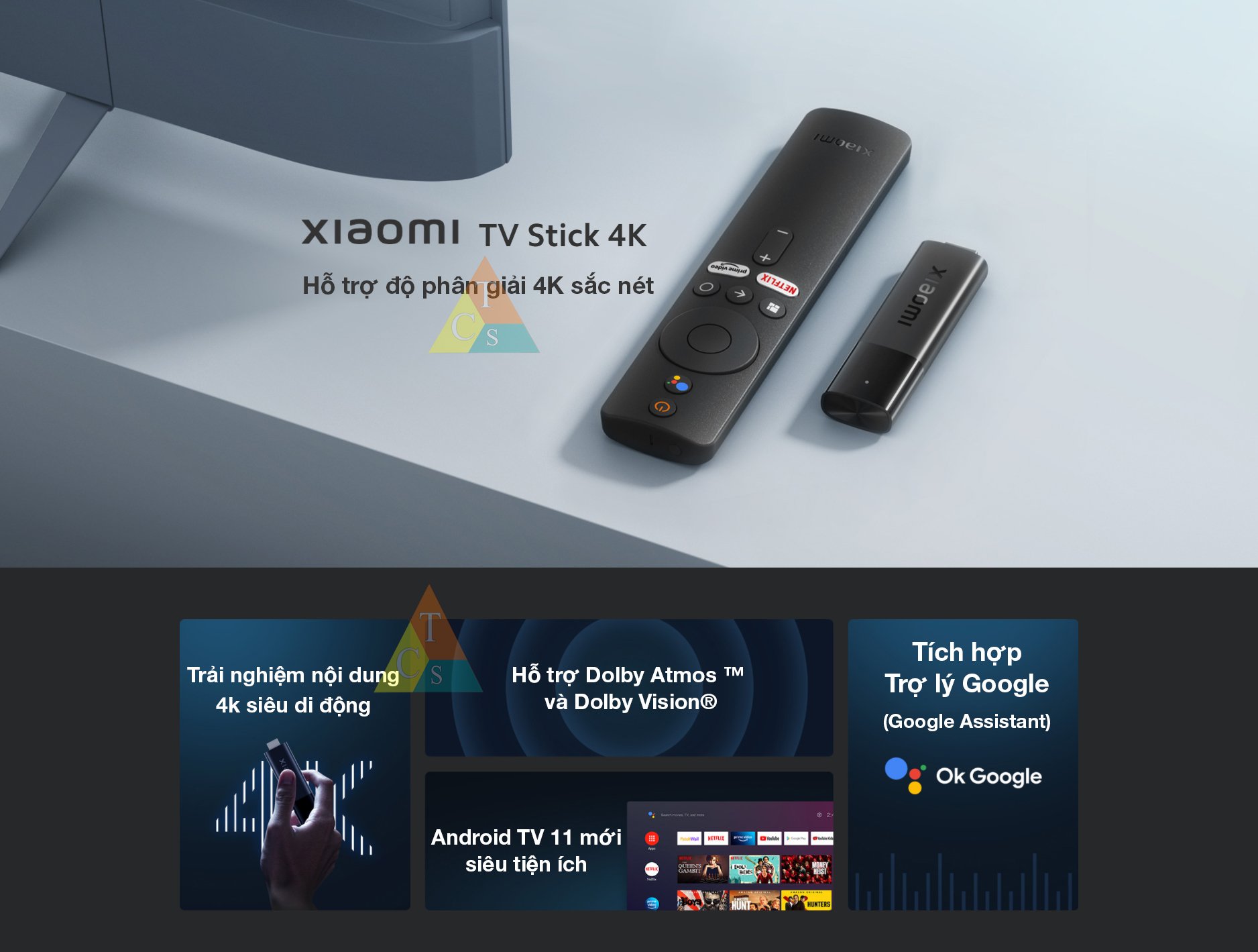 Xiaomi TV Stick 4K MDZ-27-AA hỗ trợ phân giải lên đến 4k, là thiết bị đầu tv box hợp tác giữa xiaomi và google, xử dụng room atv chính hãng do google cung cấp, tích hợp điều khiển giọng nói tiếng việt google assistant, phù hợp cho những nhu cầu như xem phim, xem youtube, xem tv trực tuyến, chơi game…