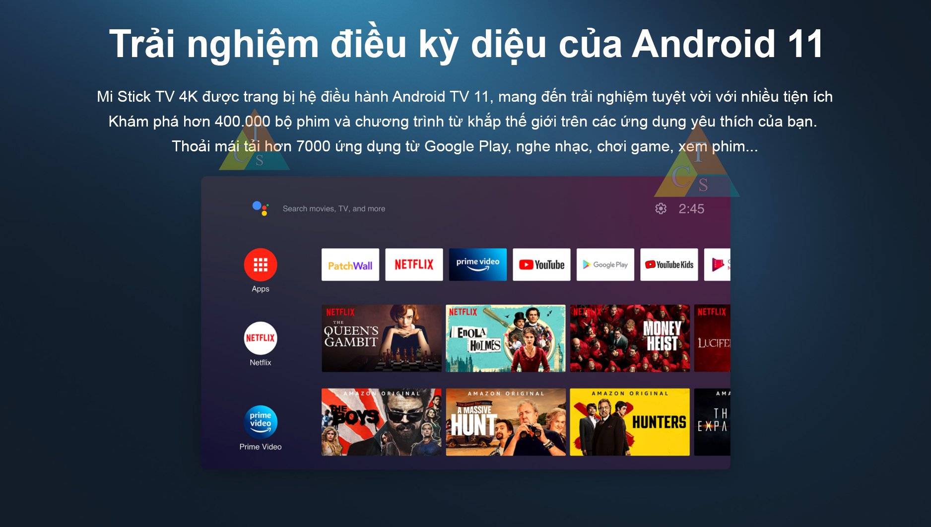 ✔ Chạy hệ điều hành Android 11 ATV (chính chủ được công nhận bởi Google), có thể nâng cấp về sau