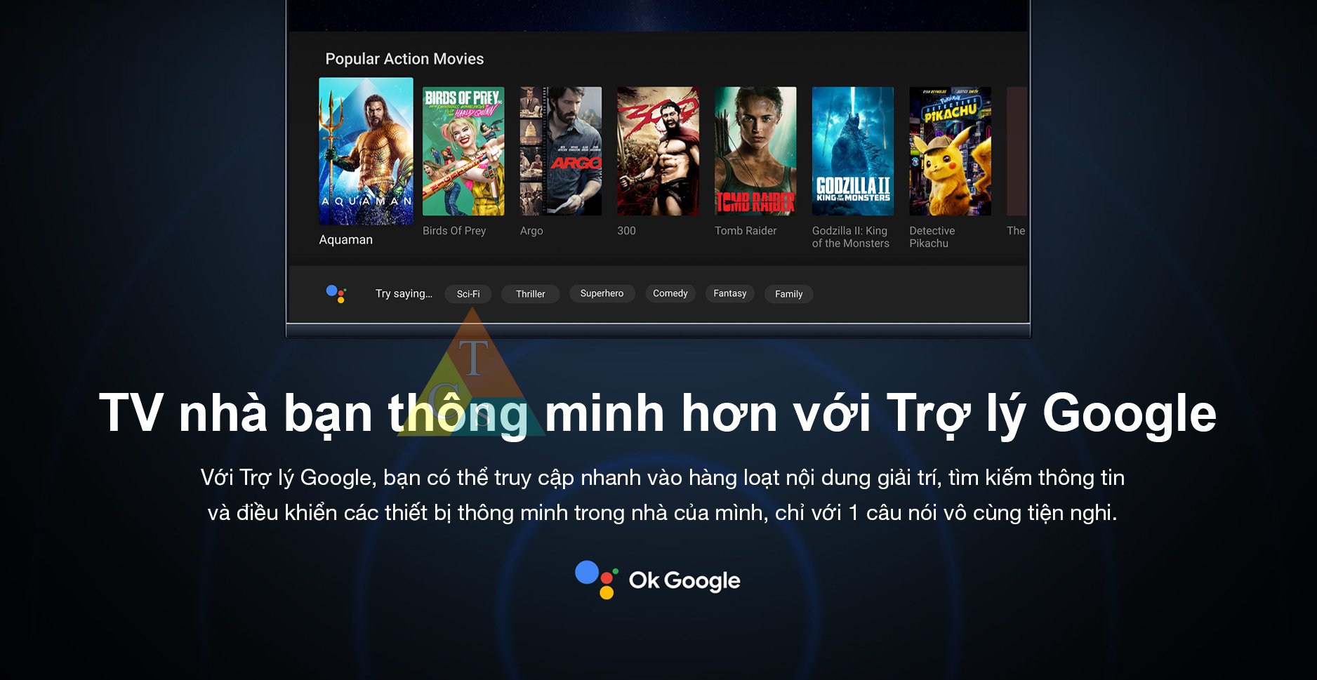 Trợ lý ảo Google Assistant được tích hợp trên đầu thu Xiaomi cho phép bạn tìm kiếm nhanh bằng giọng nói mà không cần nhấn ký tự như cách tìm kiếm thông thường. Chỉ cần nhấn nút Google Assistant và ra lệnh tìm kiếm, chương trình hay nội dung yêu thích sẽ hiển thị trên màn hình tivi để bạn lựa chọn.