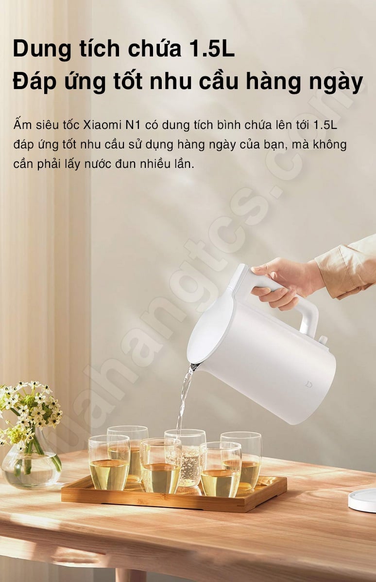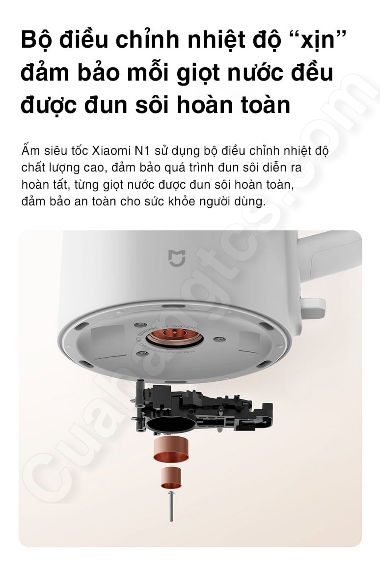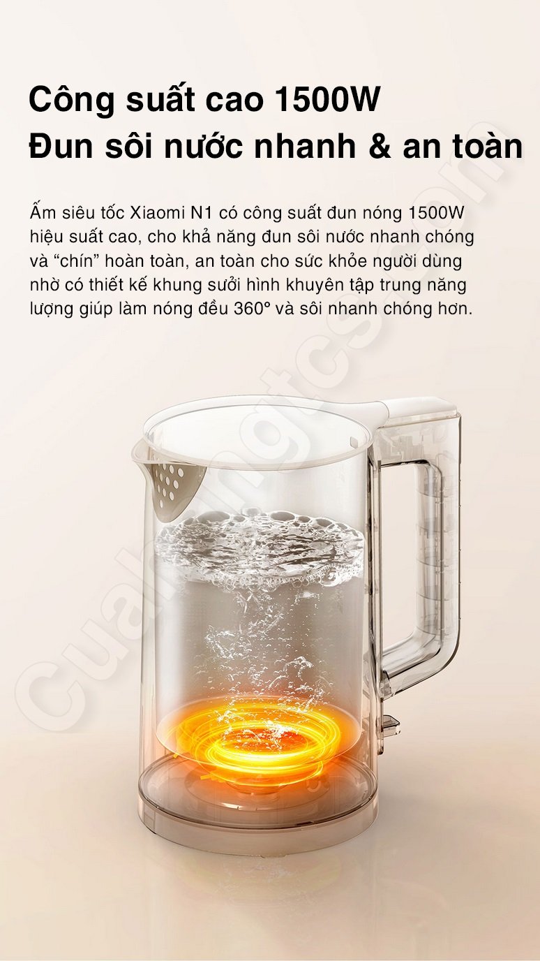 Bình đun siêu tốc Mijia Electric Kettle N1 có hệ thống làm nóng vòng tập trung 360° công suất cao 1500W, giúp làm nóng đều và đun sôi nước nhanh chóng. Nó cũng có bộ điều chỉnh nhiệt chất lượng cao để đảm bảo đun sôi hoàn toàn.