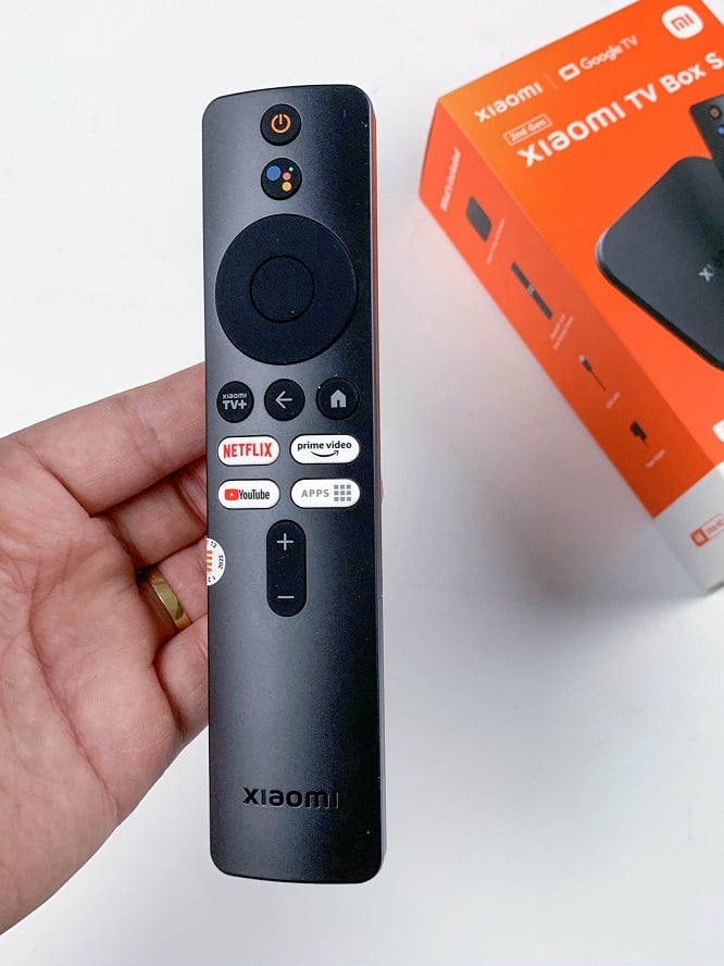 Mibox S Android TV 4K Global bản quốc tế còn được hỗ trợ một remote Bluetooth + IR hồng ngoại điều khiển từ xa trong phạm vi 10m. Điều khiển được tích hợp nút tìm kiếm bằng giọng nói nên bạn có thể thoải mái điều khiển bằng chính giọng nói của mình bằng cách giữ phím này trên remote và ra lệnh yêu cầu nội dung cần tìm kiếm.