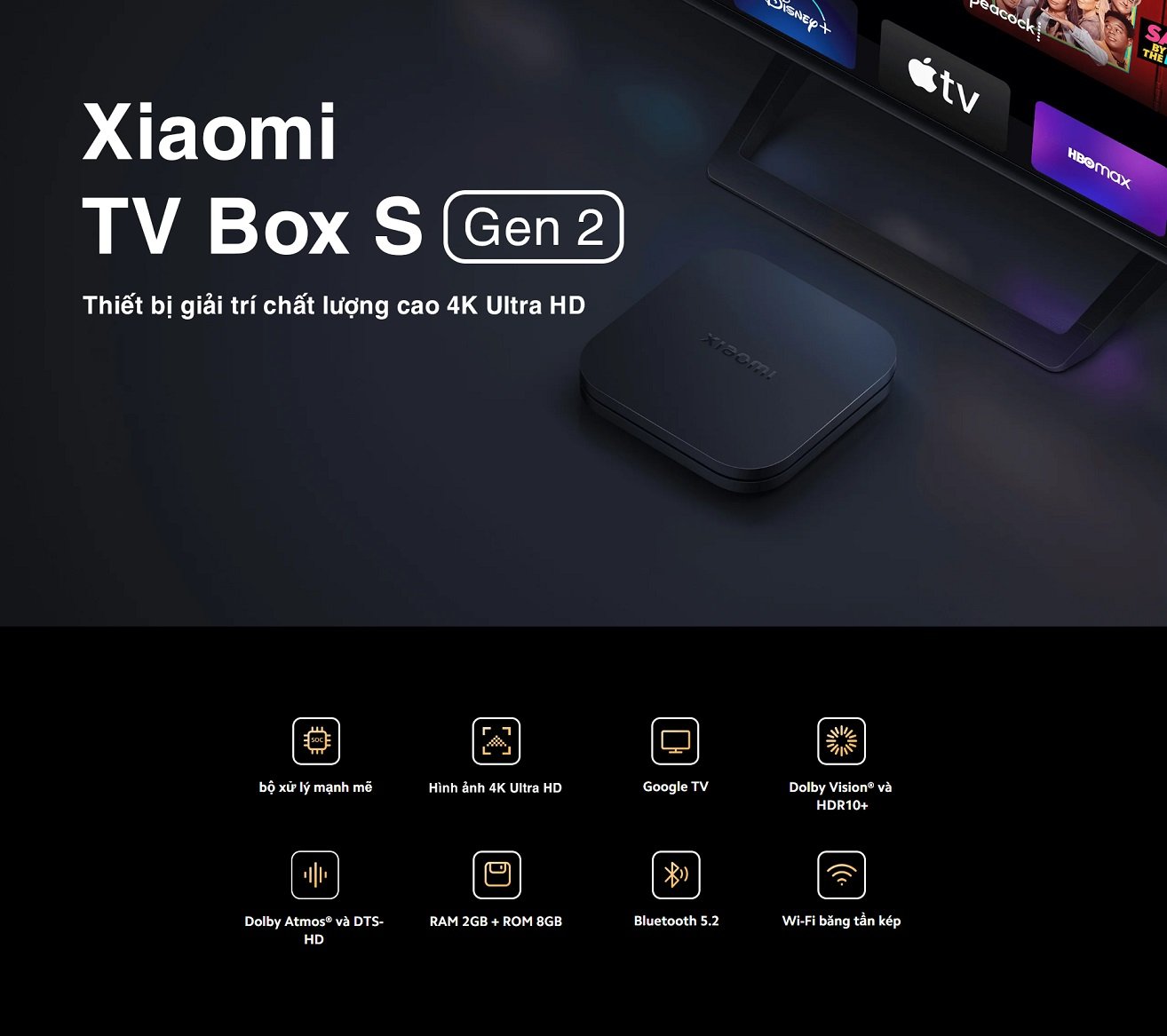 Xiaomi TV Box S 2nd Gen 4k Quốc Tế là thiết bị đầu android tvbox hợp tác giữa xiaomi và google, xử dụng room atv chính hãng do google cung cấp, sử dụng CPD Cortex-A55, ram 2gb cùng bộ nhớ 8gb, siêu ổn định siêu mượt, phù hợp cho những nhu cầu như xem phim, xem video 4k, xem youtube, xem tv trực tuyến, chơi game…