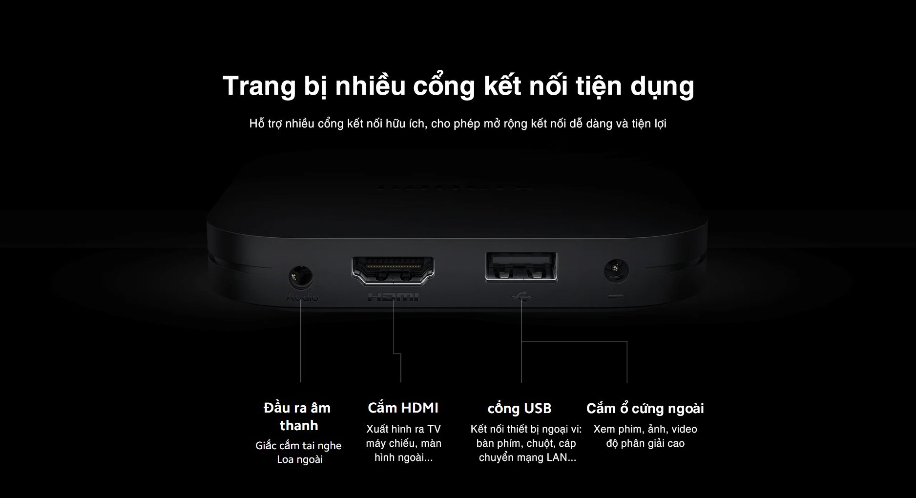 ✔Cổng kết nối: 1 cổng HDMI 2.1 (update so với mibox s); 1 cổng USB 2.0.