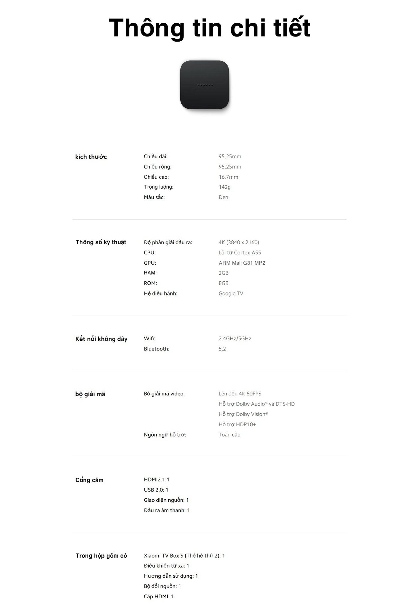 Thông số sản phẩm Mibox S Android TV 4K Global 2nd bản quốc tế
