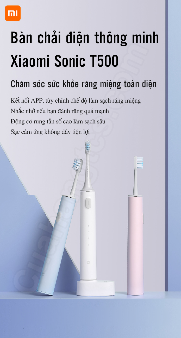 Bàn chải điện thông minh Mijia Sonic T500 với thiết kế đơn giản, khả năng kết nối App Mihome, tùy chỉnh chế độ làm sạch răng miệng, chải lông thông qua chuẩn an toàn quốc tế FDA của Mỹ, chuẩn chống nước IPX7…