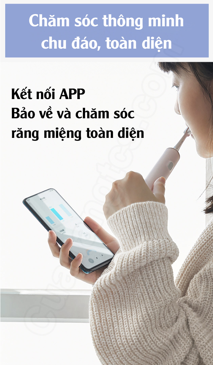 Ngoài ra, bạn còn có thể kết nối bàn chải với App thông qua Bluetooth để theo dõi và lựa chọn phương pháp đánh răng phù hợp với mình nhất. Đặc biệt là trang bị gia tốc kế có độ chính xác cao giúp xác định tư thế, góc và phạm vi chải phù hợp với từng cá nhân người dùng.