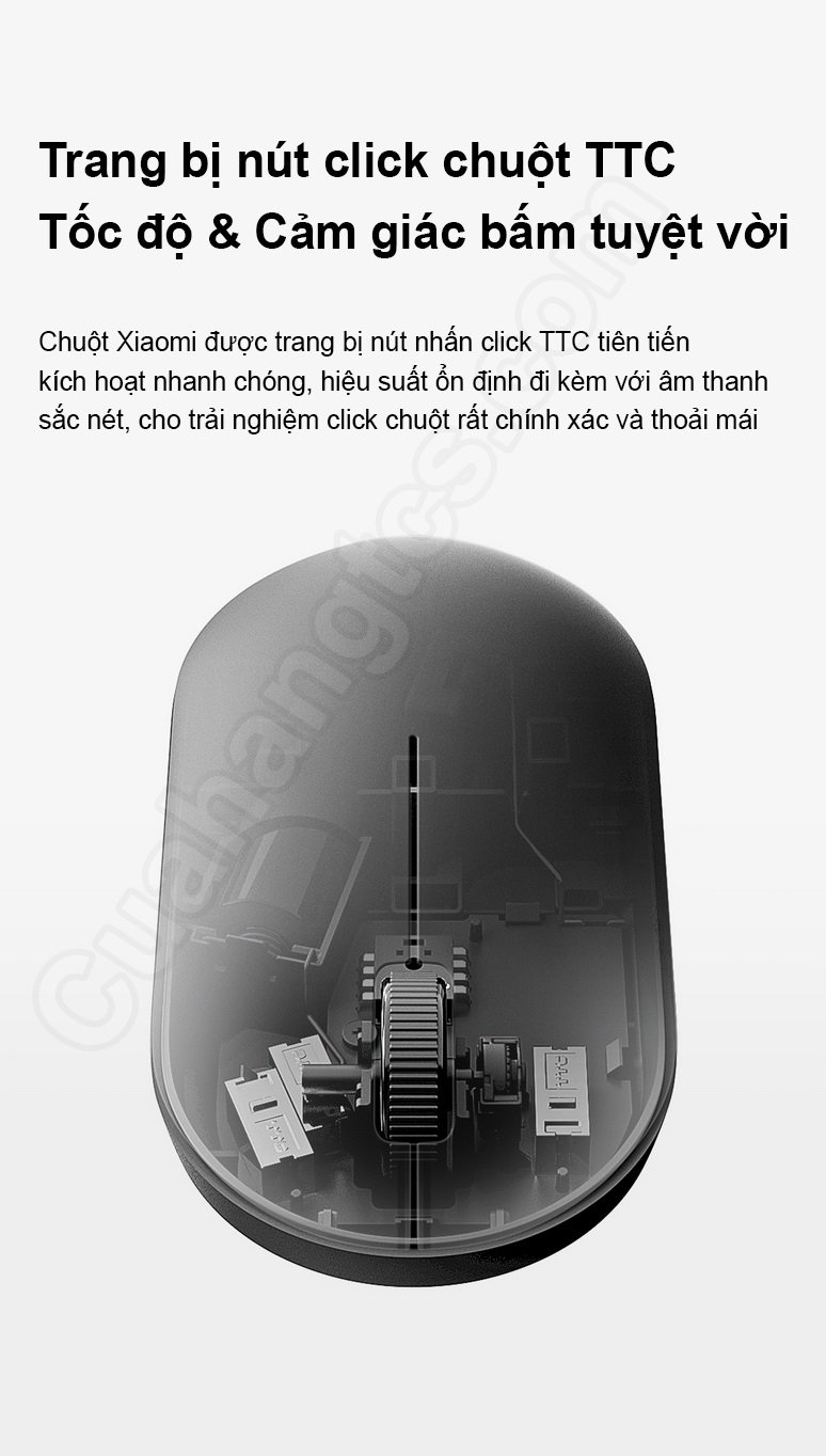 Con chuột trong bộ chuột không dây Xiaomi WXJS02YM được trang bị kết cấu khá gọn nhẹ chỉ khoảng 60g. Thiết kế đối xứng với bánh lăn giữa cũng giúp thao tác xử lý thoải mái hơn và có thể linh hoạt sử dụng cả tay trái và tay phải. Kết cấu toàn bộ chuột với kích thước trung bình, vừa vặn trong lòng bàn tay sẽ giúp người dùng dễ dàng kiểm soát các chuyển động, định vị, giảm tối đa áp lực lên ngón tay và cổ tay, tránh gây mỏi khi sử dụng trong thời gian dài.