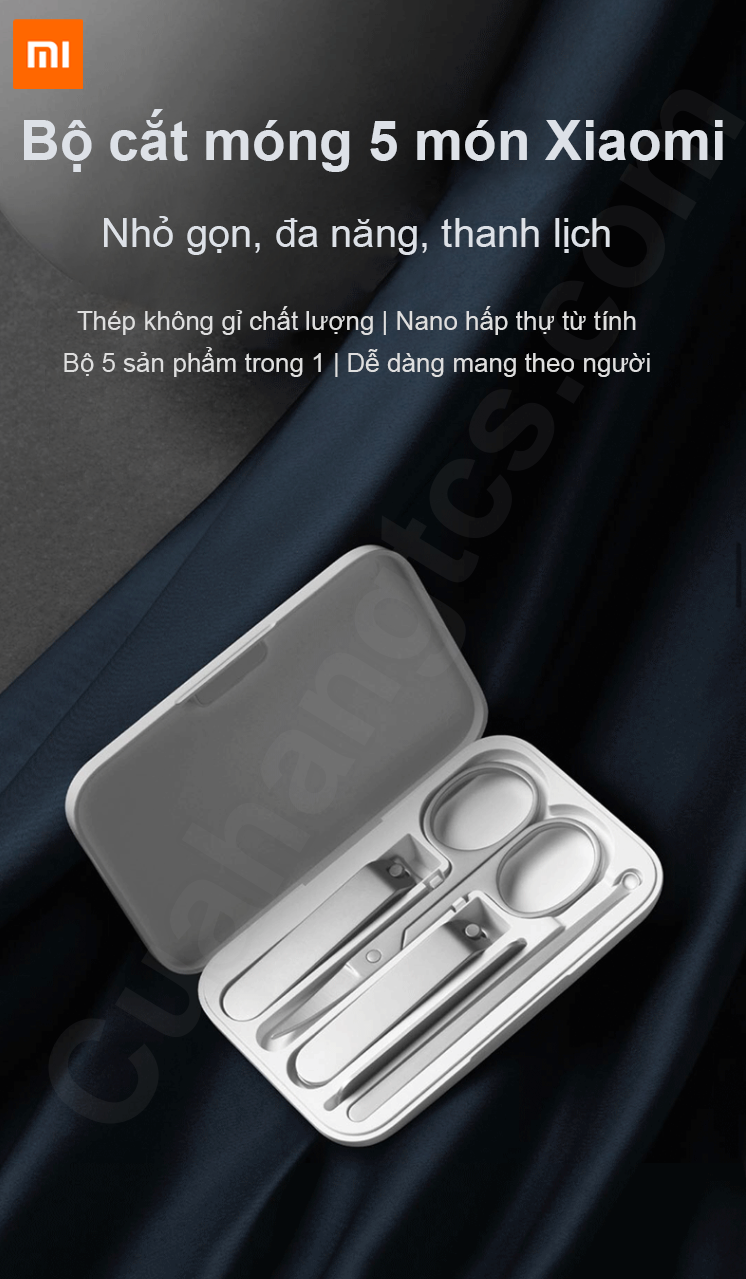 Bộ dụng cụ chăm sóc móng xiaomi là hộp gồm 5 sản phẩm 2 bấm móng, 1 kéo cắt tỉa, 1 dĩa móng và 1 ngoáy tai. Hộp đựng có khả năng hút từ tính sang trọng, được làm bằng inbox 420 và 430 cao cấp, sắc bén cùng độ bền cực lâu, là sản phẩm không thể thiếu trong mỗi gia đình…