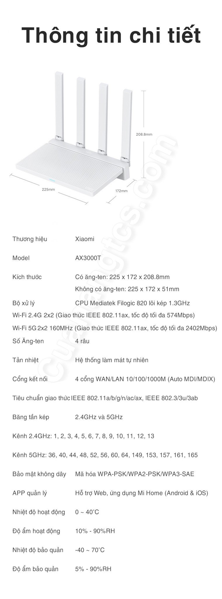 Thông số kỹ thuật Router Xiaomi AX3000T