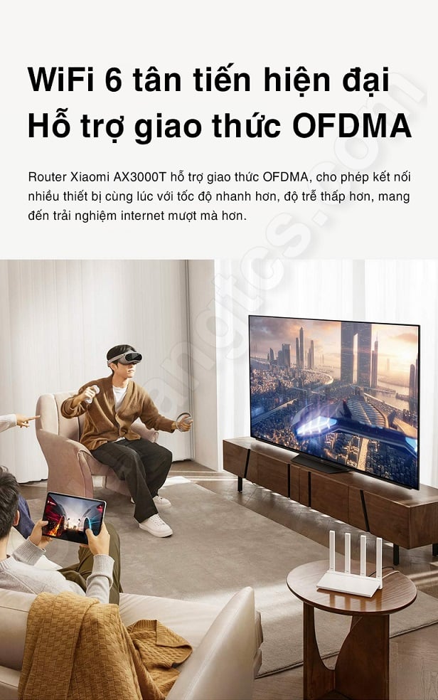 Ngoài ra, router Wifi 6 mới cũng hỗ trợ giao thức OFDMA, cho phép kết nối nhiều thiết bị cùng lúc với tốc độ nhanh hơn, độ trễ thấp hơn, mang đến trải nghiệm internet mượt mà hơn.