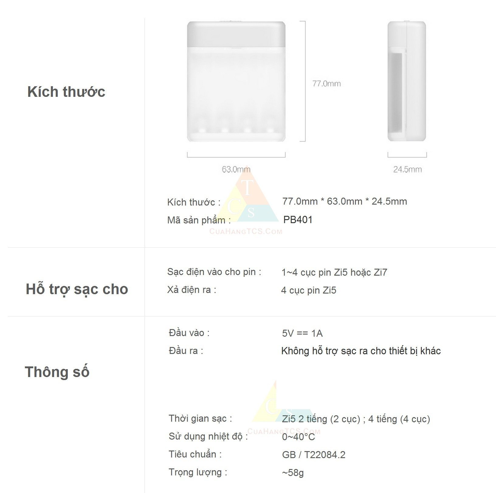 ✔ Là bộ sạc cho pin tiểu của hãng Xiaomi ZMi