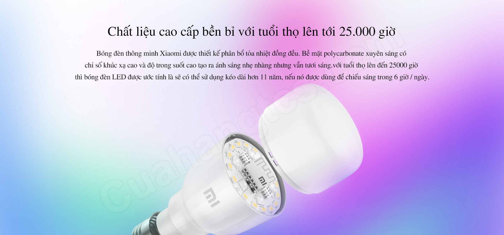 Bóng đèn thông minh Mi Smart LED Bulb Essential có trọng lượng khá nhẹ, sử dụng đuôi đèn E27 phổ biến, do đó mà việc lắp đặt của người dùng sẽ trở nên đơn giản và thuận tiện hơn. Ngoài ra, đèn được làm bằng vật liệu PC chất lượng với chỉ số khúc xạ cao, độ trong suốt cao cho đường truyền ánh sáng xa, hiển thị màu sắc nhẹ nhàng nhưng vẫn tươi sáng. Chính vì vậy với bóng đèn LED Xiaomi Bulb Essential thì người dùng có thể linh hoạt lắp đặt ở mọi không gian trong gia đình từ phòng khách, phòng ngủ cho đến phòng bếp đều vô cùng hợp lý và tinh tế. Ngoài ra, với tuổi thọ lên đến 25000 giờ thì bóng đèn LED được ước tính là sẽ có thể sử dụng kéo dài hơn 11 năm, nếu nó được dùng để chiếu sáng trong 6 giờ/ ngày.