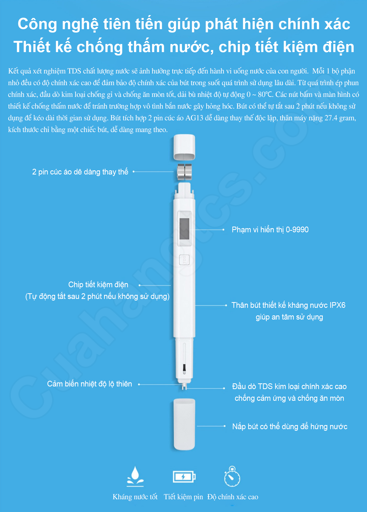 Tính năng đặc điểm Bút thử nước sạch Xiaomi TDS Water Quality Meter Tester