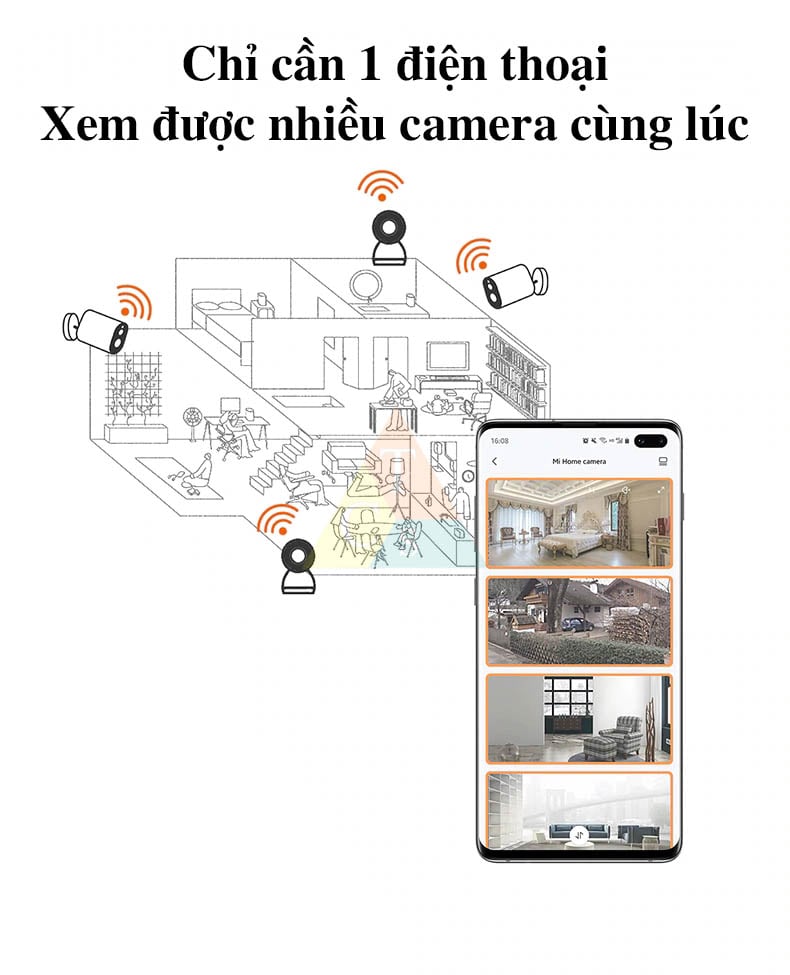 ✔ Nhiều người cùng theo dõi 1 camera hoặc nhiều camera thông qua điện thoại ở bất kỳ đâu chỉ cần có mạng wifi hoặc 3g/4G