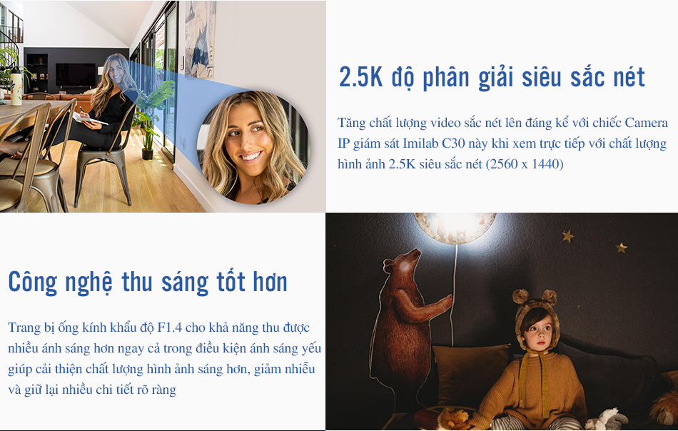 Xiaomi Imilab C30 CMSXJ21E được nâng cấp về chất lượng hình ảnh một cách đáng kể. So với các thế hệ trước, độ phân giải chỉ ở mức 720P và 1080P thì phiên bản mới này đã sở hữu độ phân giải lên đến 2.5K 1440p 2.5k (2560 x 1440). Nhờ đó, các chi tiết hình ảnh và video mà camera thu được sẽ có thể hiển thị một cách mượt mà, rõ ràng và chi tiết hơn.