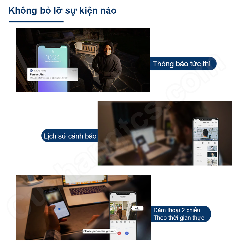 Camera Xiaomi Imilab EC4 tích pin còn sở hữu khả năng đàm thoại 2 chiều theo thời gian thực, cho phép người dùng có thể liên lạc từ xa với người thân tại nhà, một tính năng vô cùng hữu ích giúp bạn không phải bỏ lỡ bất kỳ tin nhắn quan trọng nào.