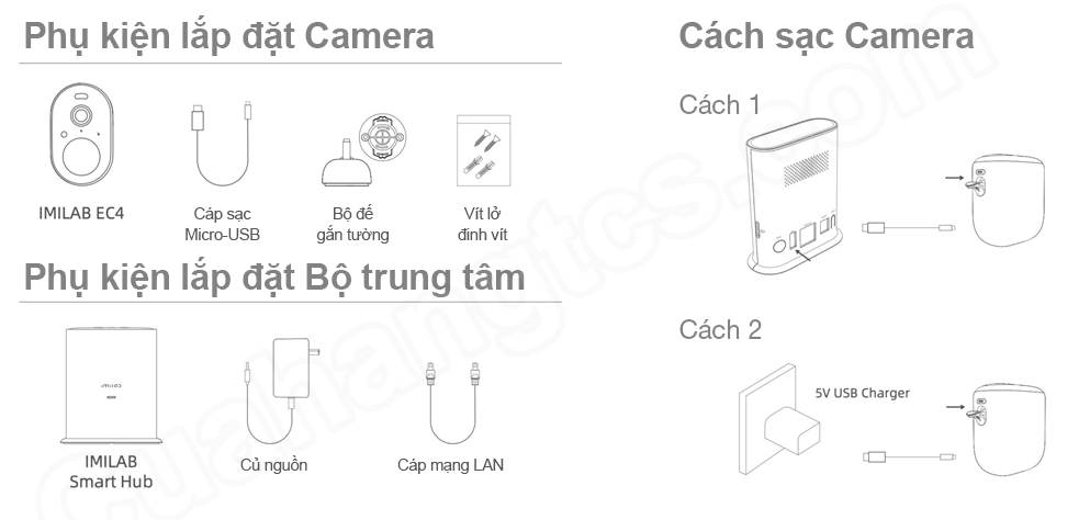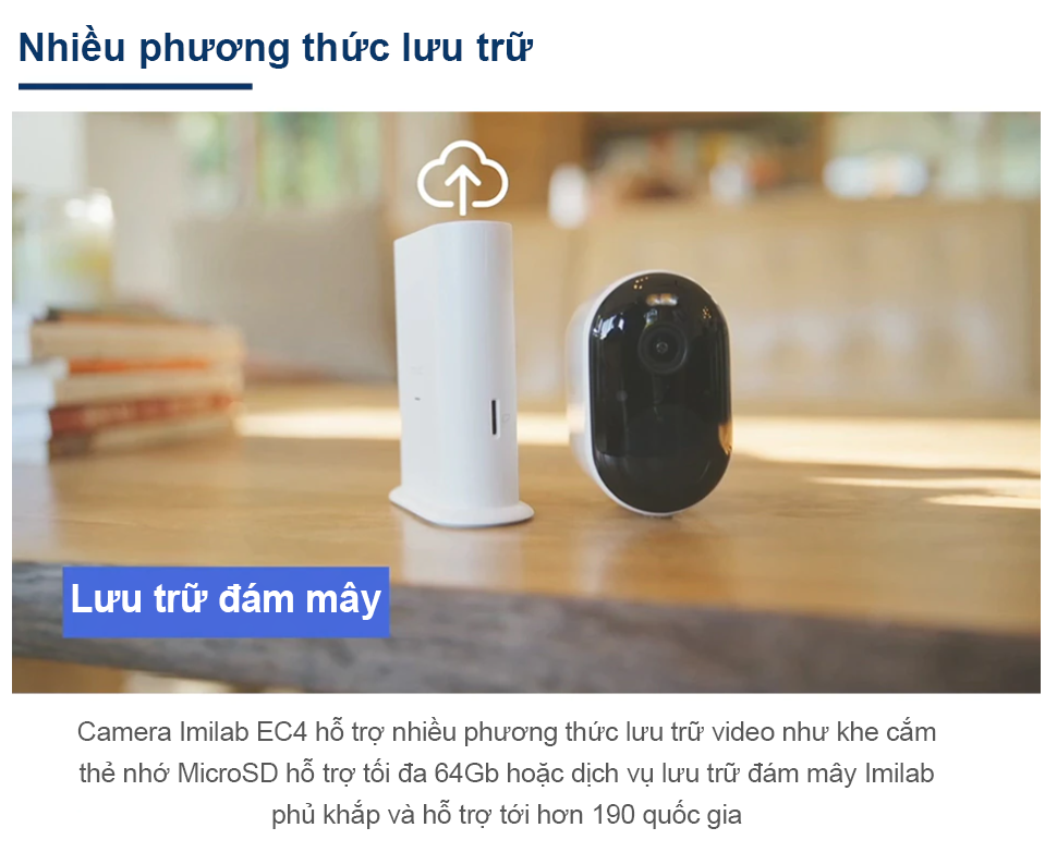 Camera Xiaomi Imilab EC4 được trang bị một hộp sạc đi kèm với dung lượng 5200 mAh, bạn có thể yên tâm mỗi khi cúp điện camera vẫn có thể ghi hình bình thường, hoạt động thêm một khoảng thời gian dài. Bên cạnh đó, hộp sạc này còn được tích hợp loa, nút báo thức và các cổng kết nối camera, nguồn, Ethernet…một khe cắm thẻ nhớ MicriSD ( hỗ trợ thẻ nhớ 64 Gb).