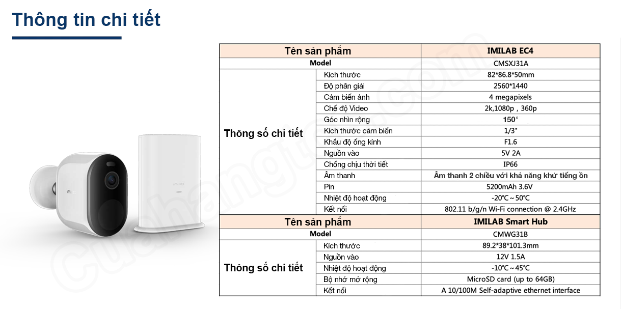 Thông số kĩ thuật Camera có màu ban đêm Xiaomi Imilab EC4