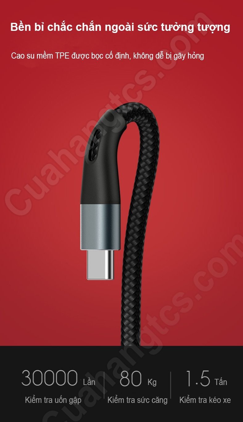 Phần tay cầm của cáp được làm từ chất liệu hợp kim nhôm cao cấp, thông qua lớp phủ sơn anodized đem lại bề mặt mịn lì, cho cảm giác cầm thích tay. Đồng thời quá trình này giúp sản phẩm không bị oxy hóa hoặc bong tróc, nâng cao tuổi thọ cho sản phẩm.