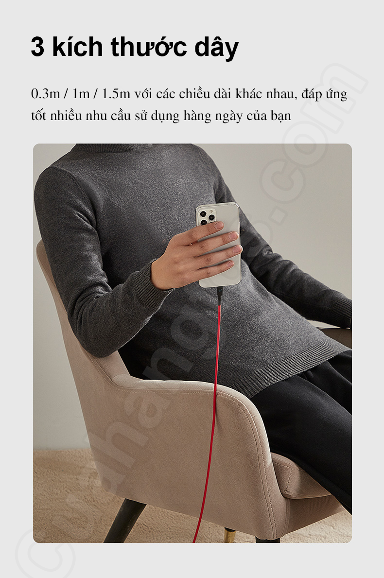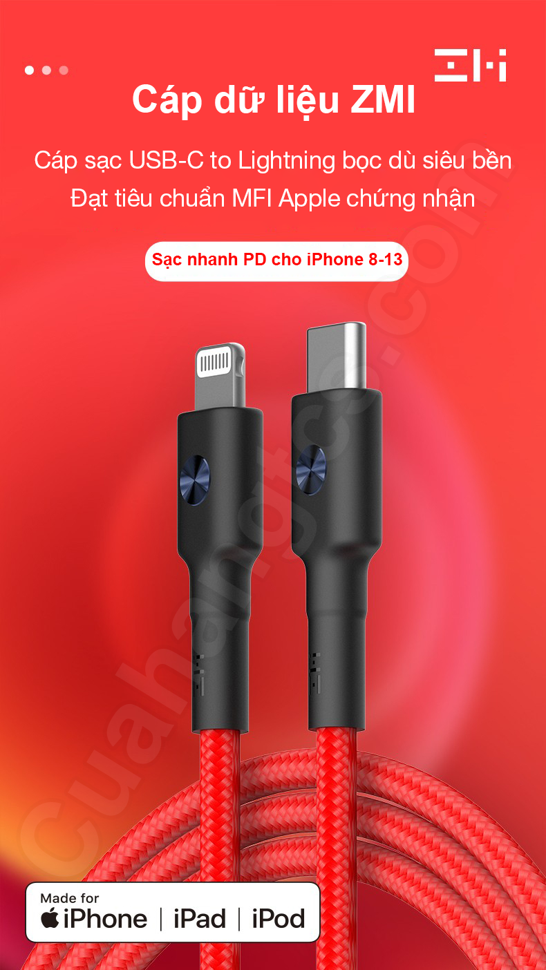 Việc kết nối những chiếc Iphone 8, 8 Plus, X, XS,… với các thiết bị sử dụng giao thức Lightning đã không còn khó khăn nữa vì đã có Cáp sạc nhanh PD chuẩn MFI type C to Lightning ZMI AL873K. Sản phẩm không chỉ đáp những tính năng cần có của một thiết bị sạc nhanh mà còn đáp ứng nhu cầu khách hàng với nhiều kích thước dây khác nhau.