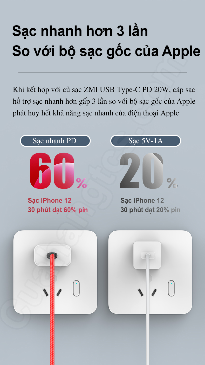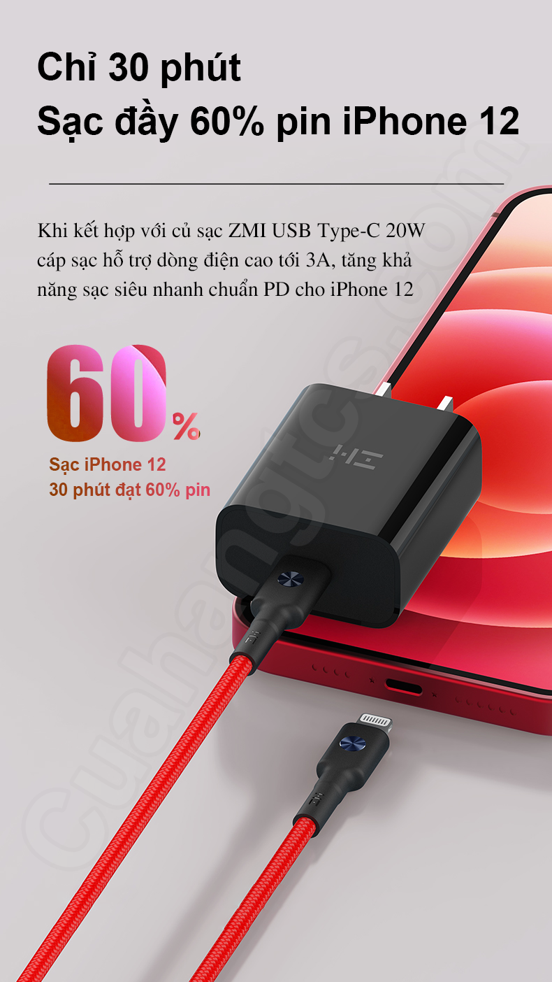Cáp sạc nhanh AL873K chuẩn PD chuyển đổi Type C sang Lightning ZMI, với cáp sạc này kết hợp với 1 củ sạc có hỗ trợ chuẩn PD bạn có thể sạc chiếc iphone của bạn NHANH GẤP ĐÔI, Chuẩn MFI, đã sạc nhanh là cứng cáp làm từ vật liệu áo chống đạn siêu bền…