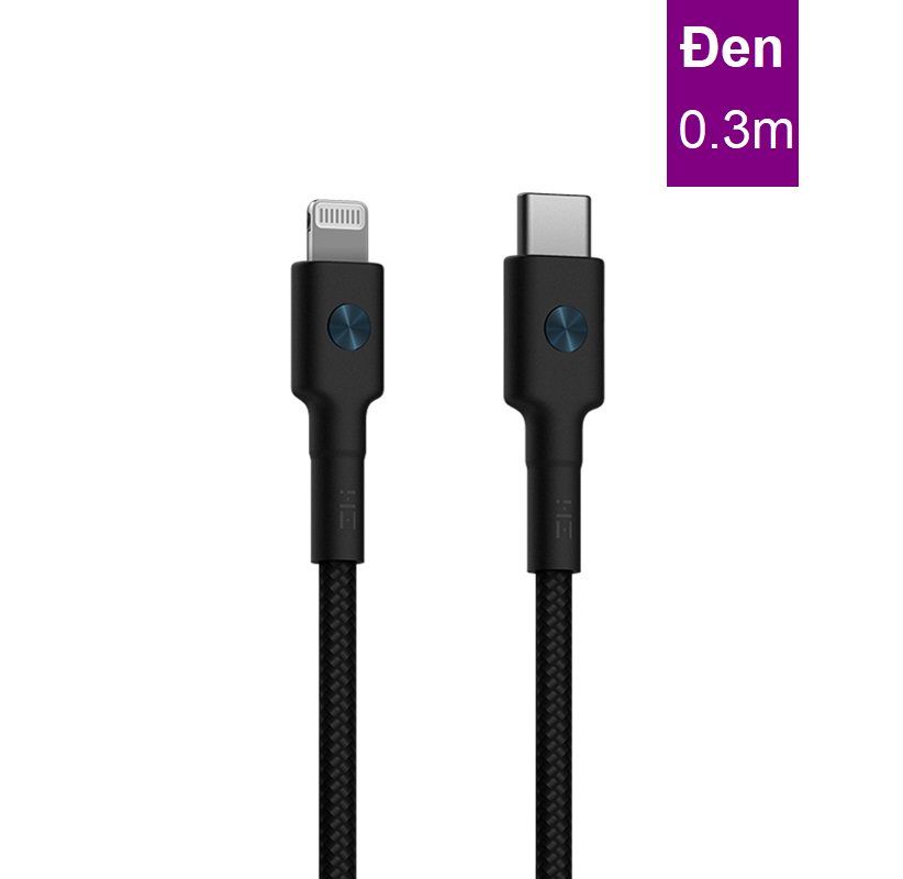 Cáp sạc nhanh chuẩn MFI type C to Lightning ZMI có màu đen với model AL873K.