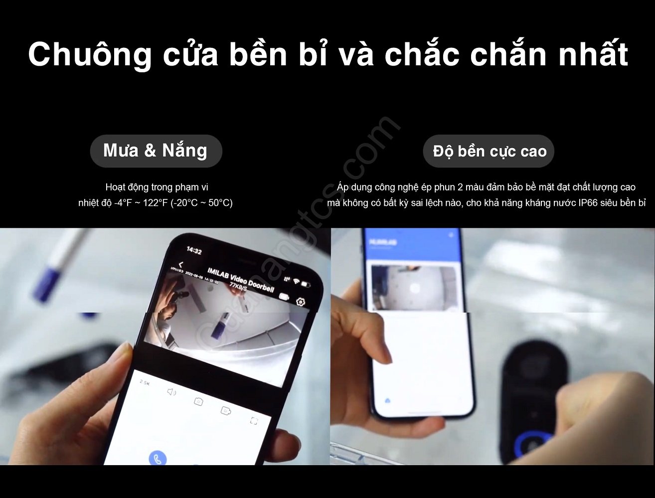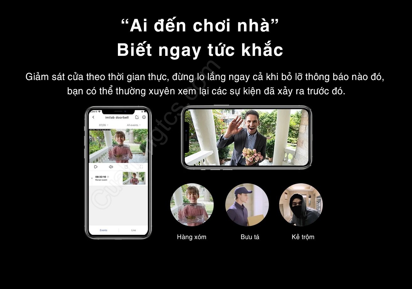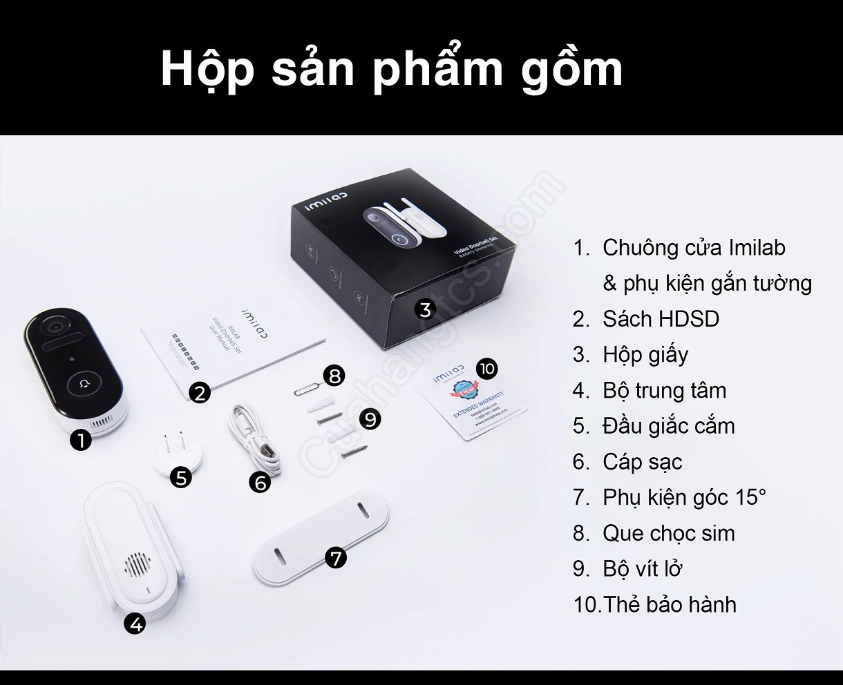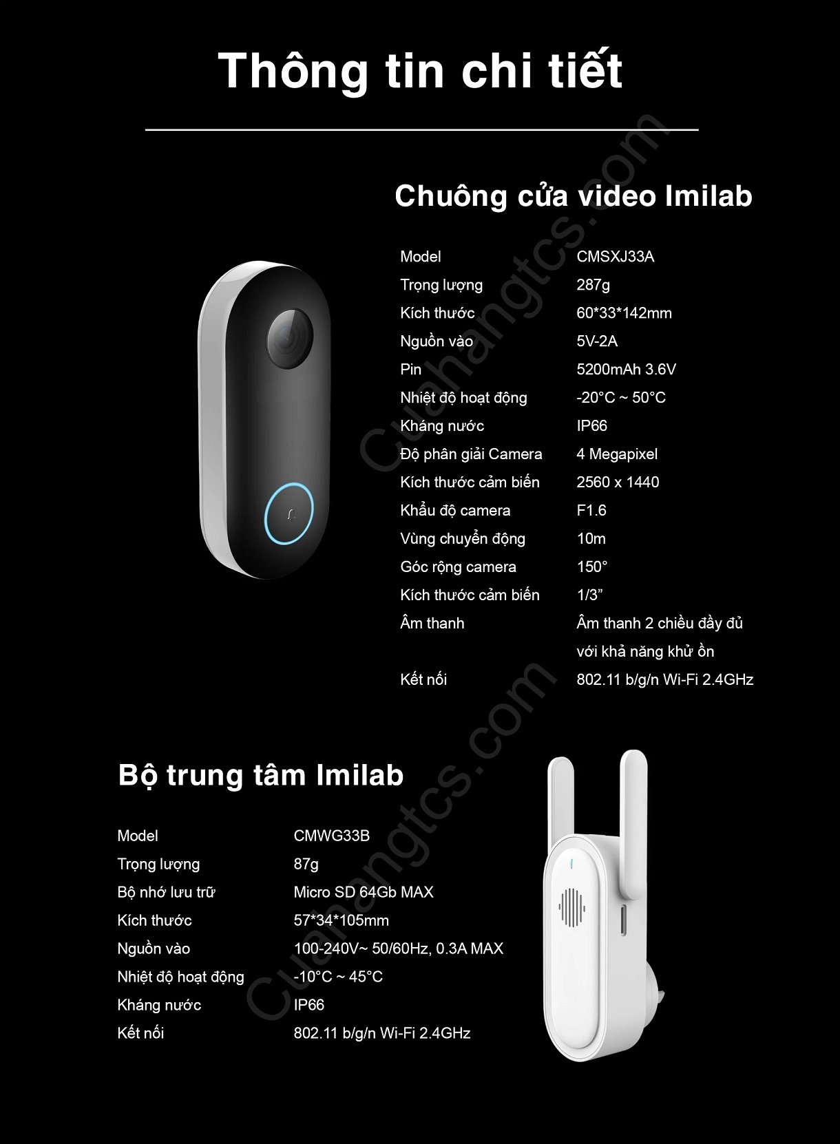 Imilab Video doorbell set CMSXJ33A là dòng camera kiêm chuông cửa đến từ Imilab, độ phân giải 2.5k sắc nét, đàm thoại 2 chiều, góc nhìn 150 độ, thông báo trực tiếp đến điện thoại, cảm biến người PIR thông minh, quản lý qua app