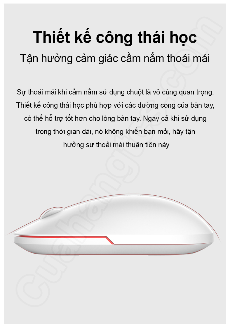 Nếu người dùng cảm thấy khó chịu vì âm thanh từ các cú click chuột thì phiên bản lần này, Xiaomi đã khắc phục điều đó. Chuột không dây gen 2 2020 sở hữu thiết kế khá thông minh cho các thao tác click chuột êm ái hơn, vì vậy dù sử dụng trong thư viện, phòng làm việc, phòng họp hoặc phòng ngủ đều không làm phiền người khác, một điểm cộng đáng kể của sản phẩm. Sự thoải mái khi cầm chuột là khá quan trọng. Nhà sản xuất biết điều đó vì vậy đã điều chỉnh thiết kế chuột không dây gen 2 với các đường cong hợp lý hơn, hỗ trợ tốt cho lòng bàn tay, ngay cả khi người dùng sử dụng trong thời gian dài cũng không quá mệt mỏi.