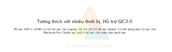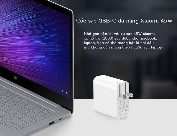 Là củ sạc điện thoại đặc biệt với 45W vừa có thể sạc cho điện thoại vừa có thể sạc điện cho laptop, chuẩn sạc nhanh QC3.0, chuẩn quốc tế với 8 mức an toàn, cực nhỏ gọn…