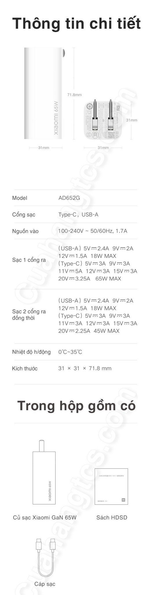 Củ sạc nhanh Xiaomi GaN 65W AD652G 1A1C