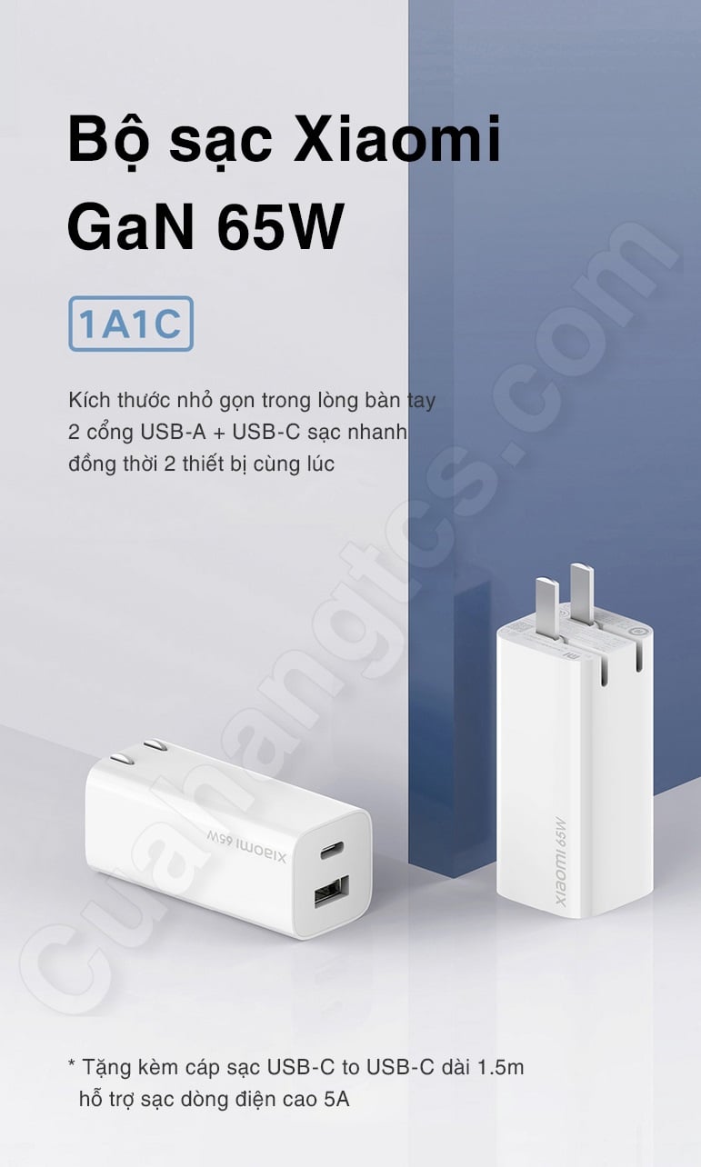 Củ sạc nhanh Xiaomi GaN 65W AD652G 1A1C – Tech1 Store