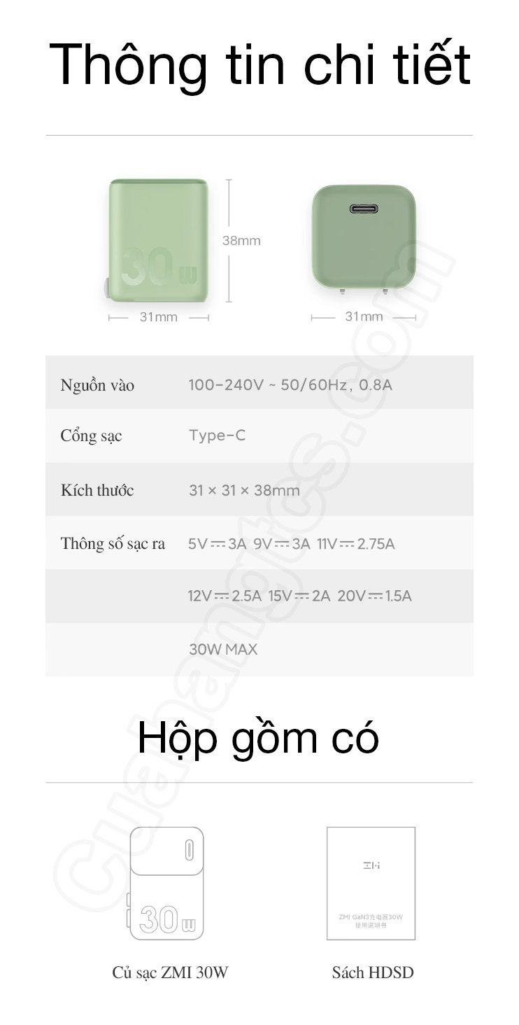 Củ sạc nhanh Xiaomi Zmi HA719 30W GaN3 USB-C – Tech1 Store