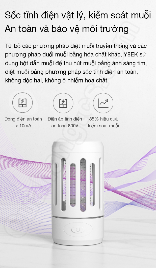 Đèn bắt muỗi Xiaomi Night Catcher Mosquito Killer Y8EK phát ra ánh sáng tím hồng với bước sóng ánh sáng từ 365nm đến 395nm thu hút các loại muỗi vào đèn, sau đó dùng tính năng sốc tĩnh điện để tiêu diệt chúng.