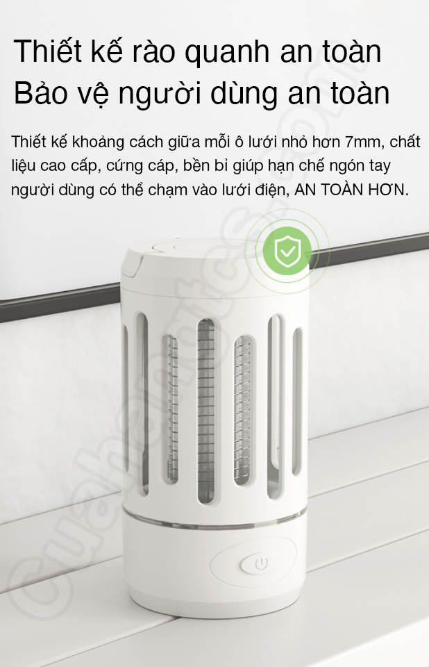 Đèn diệt muỗi đa năng Y8EK sở hữu thiết kế khá nhỏ gọn cùng vật liệu ABS khá bền chắc. Khoảng cách từ bên ngoài tới đèn diệt muỗi khoảng 7mm, khá xa, bảo vệ ngón tay khỏi chạm vào lưới điện bên trong, an toàn sử dụng cho cả người già và trẻ em. Đèn bắt muỗi hoạt động khá êm ái với độ ồn thấp, thích hợp dùng cho phòng khách, văn phòng, phòng ngủ, ngoài trời, trên xe ô tô,..