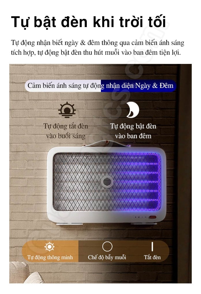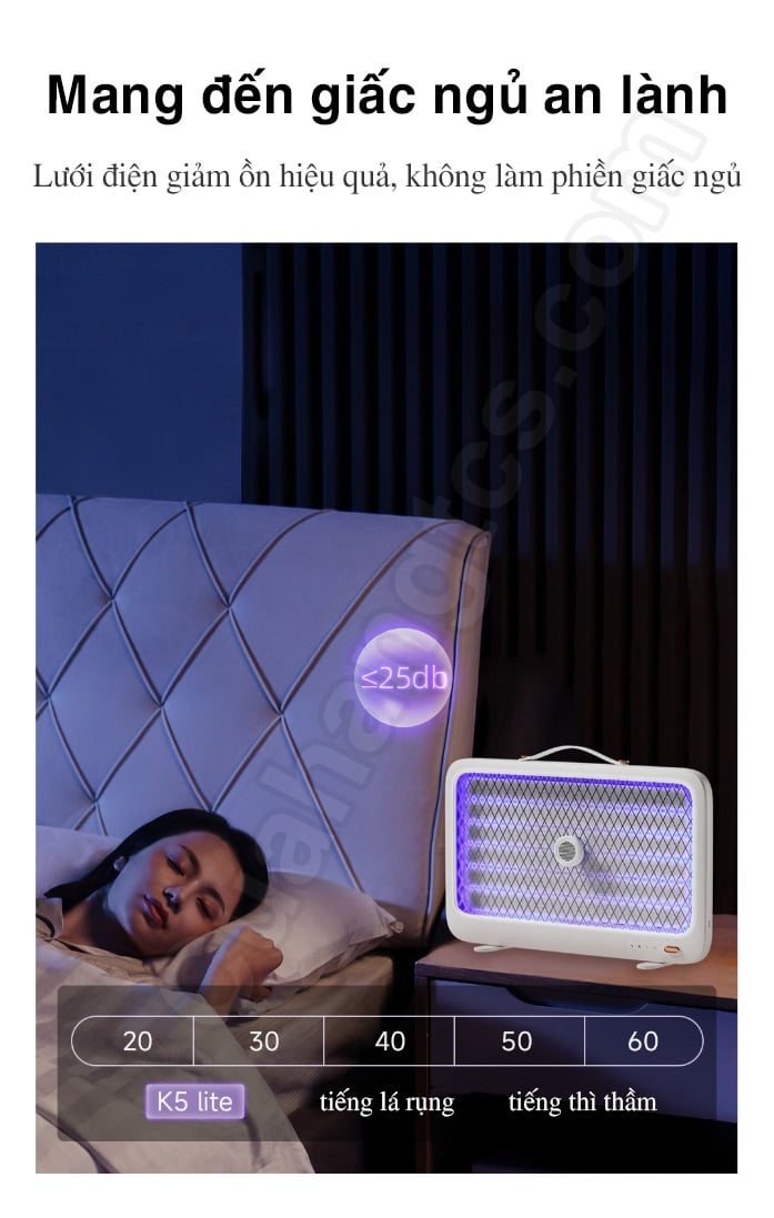 2.Tránh các nguồn sáng cạnh tranh: Đèn bắt muỗi K5 Lite hoạt động tốt trong môi trường có ánh sáng yếu. Tránh đặt đèn gần các nguồn ánh sáng mạnh khác như đèn chiếu sáng hoặc TV sáng.