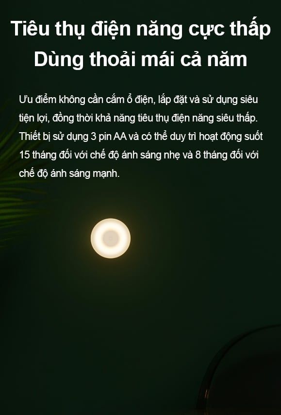 Thêm một điểm cộng lớn của chiếc đèn này nằm ở mức độ tiêu thụ điện năng siêu thấp. Có thể nói đây là một trong những sản phẩm tiết kiệm năng lượng nhất đến từ Xiaomi. Thiết bị sử dụng 3 pin AA và có thể duy trì hoạt động suốt 15 tháng đối với chế độ ánh sáng nhẹ và 8 tháng đối với chế độ ánh sáng mạnh.