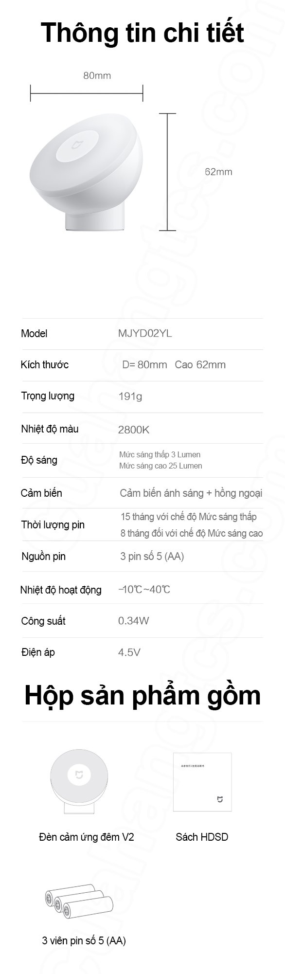 Thông số kĩ thuật Đèn ngủ Mijia 2