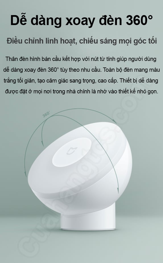 Thân đèn hình bán cầu kết hợp với nút từ tính giúp người dùng dễ dàng xoay đèn 3600 tùy theo nhu cầu. Thiết bị được làm từ vật liệu ABS thân thiện với môi trường, bền và an toàn hơn. Toàn bộ đèn mang màu trắng tối giản, tạo cảm giác sang trọng, cao cấp. Thiết bị dễ dàng được đặt ở mọi nơi trong nhà chính là nhờ vào thiết kế nhỏ gọn. Ngoài những tính năng vượt trội thì Mijia gen 2 MJYD02YL cũng như một phụ kiện trang trí làm tăng vẻ đẹp cho ngôi nhà của bạn.