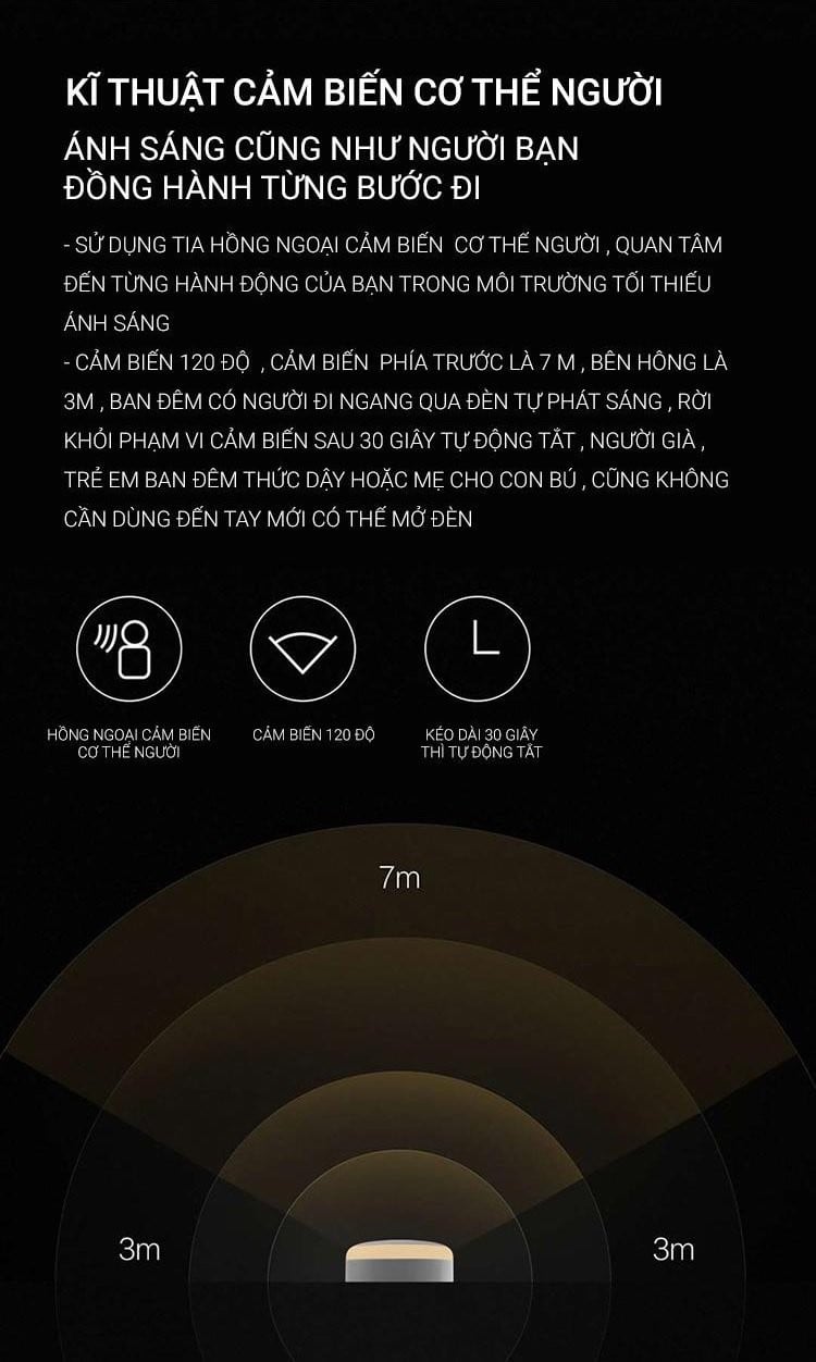 ✔ Cảm biến ánh sáng tiên tiến, góc lớn 120 độ, khoảng cách 5-7m