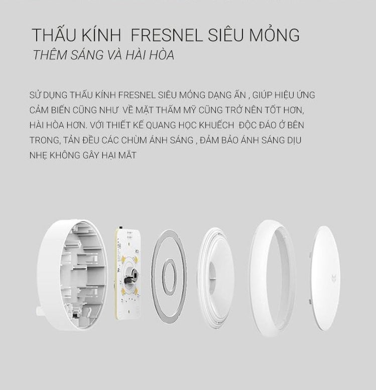 Đèn ngủ cảm biến Yeelight YLYD03YL được trang bị công nghệ thấu kính siêu mỏng Fresnel cho khả năng nhận diện cảm biến nhạy bén hơn. Bên cạnh đó thiết kế quang học của đèn còn giúp khả năng khuếch tán từng chùm tia hài hòa, đồng đều hơn. Thiết kế mờ dần của đèn sẽ tránh làm chói mắt đột ngột, làm dịu mắt, cho cảm giác tiếp xúc ánh sáng thoải mái hơn.
