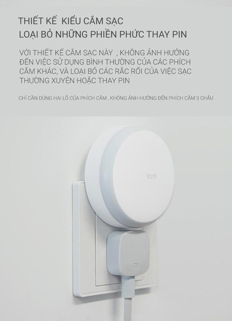 Đặc biệt thiết kế phích cắm còn linh hoạt hơn giúp người dùng không còn phải lo lắng về vấn đề hết pin, sạc pin cho Yeelight YLYD03YL. Hơn nữa với hình dạng tròn cùng kích thước nhỏ gọn thì đèn chỉ chiếm khoảng 2 giắc cắm trên ổ, đảm bảo không chiếm quá nhiều diện tích gây bất tiện cho người dùng. Ngoài ra, đèn còn hoạt động với khả năng tiêu thụ điện năng cực thấp với công suất định mức chỉ có 0.4W.