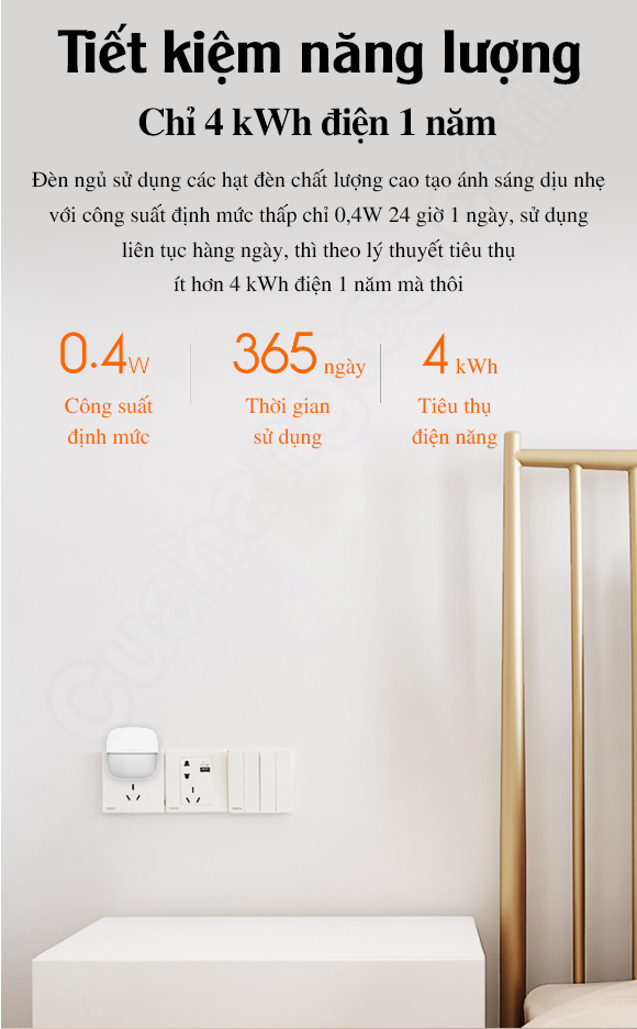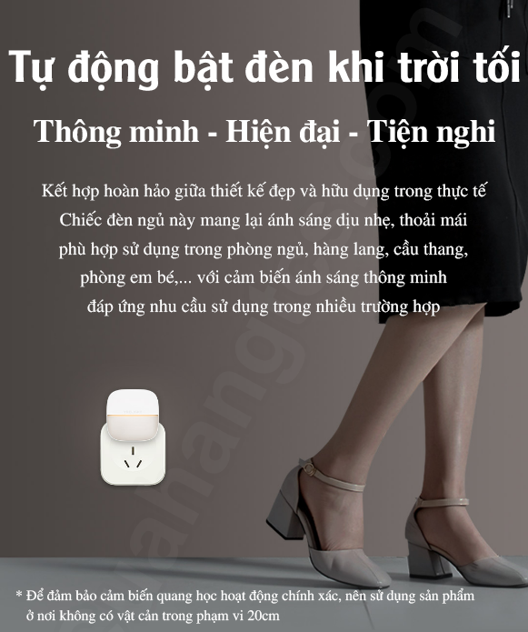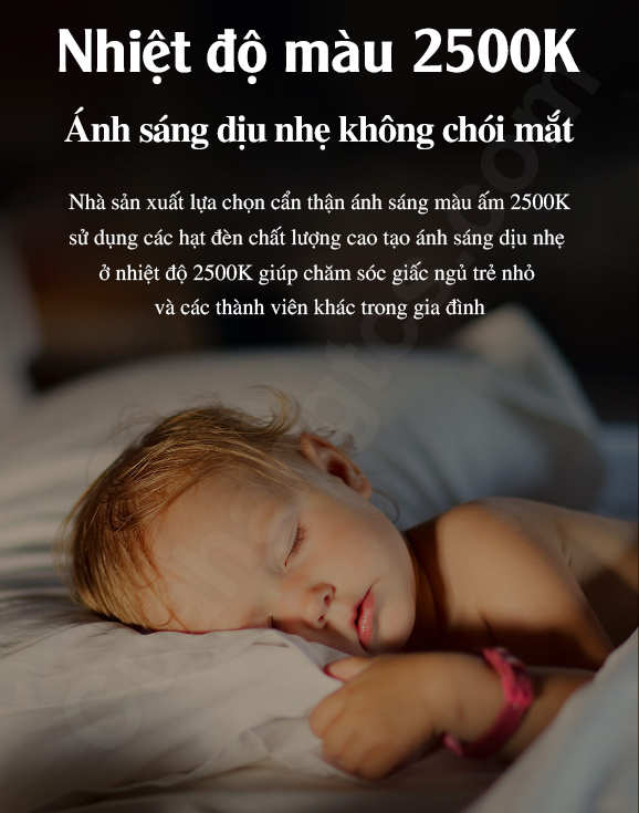 Nhiệt độ màu của đèn ngủ là 2500K, không quá sáng cũng không quá tối, cho nguồn sáng dịu không chói. Bên cạnh đó nhà sản xuất trang bị cảm biến ánh sáng thông minh giúp tự động xác định chính xác độ sáng của ánh sáng xung quanh, cho đèn ngủ tự động tắt vào ban ngày. Vì vậy người dùng có thể cắm đèn ngủ vào ổ cắm mà không cần phải rút hoặc dịch chuyển vị trí tốn thời gian.