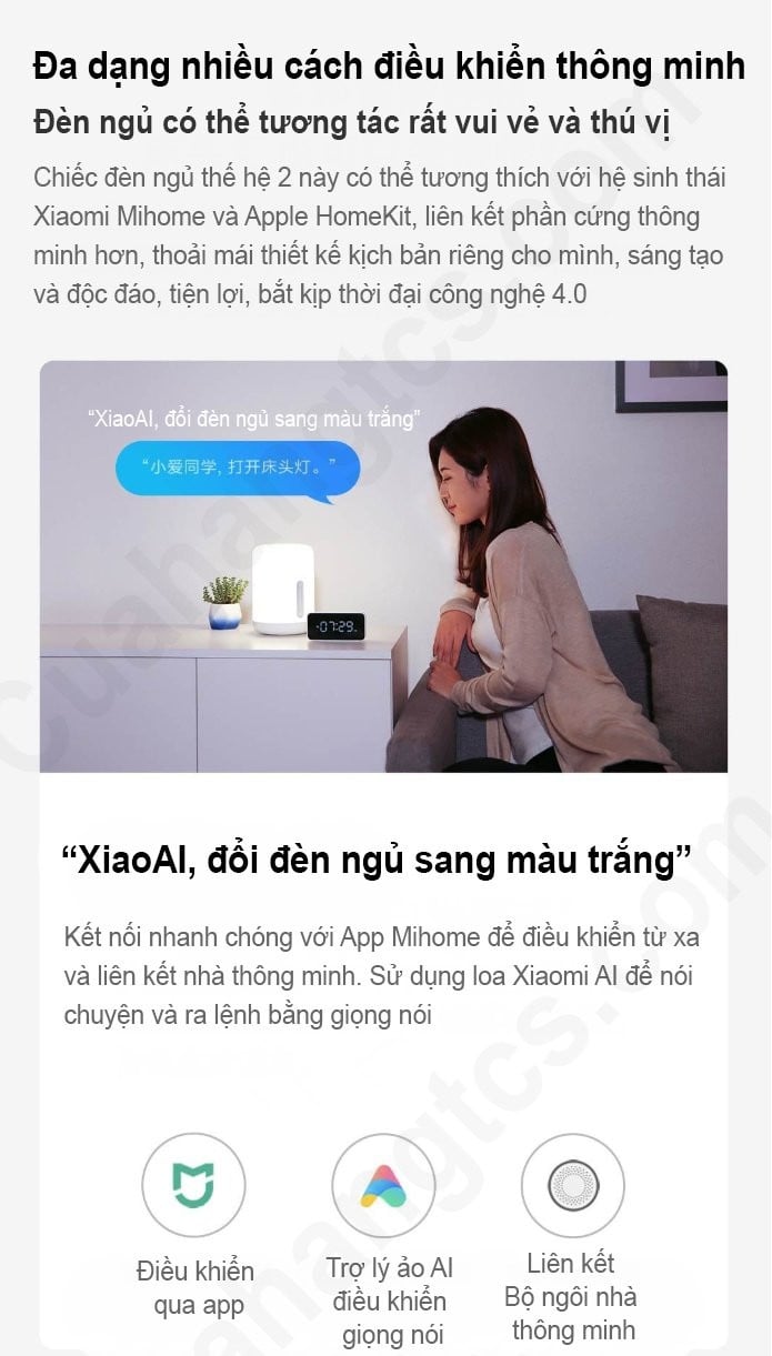 ✔ Kết nối đồng bộ App MiHome hoặc điều khiển bằng giọng nói, tương thích với hệ sinh thái Xiaomi và Apple HomeKit