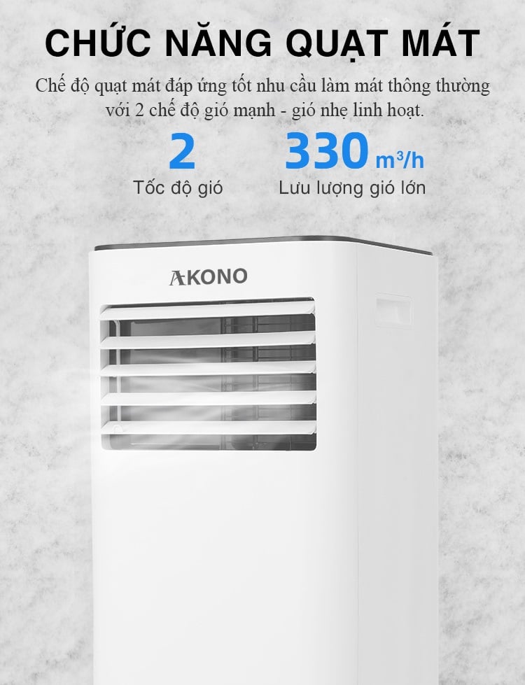Nếu trời không nóng thì phải làm sao, máy lạnh akono sẽ như 1 chiếc quạt dân dụng vậy, với 2 mức độ giá khác nhau mạnh và nhẹ, bạn có thể quạt phe phẩy lưu thông gió, tạo cảm giác thoải mái khi đi ngủ.