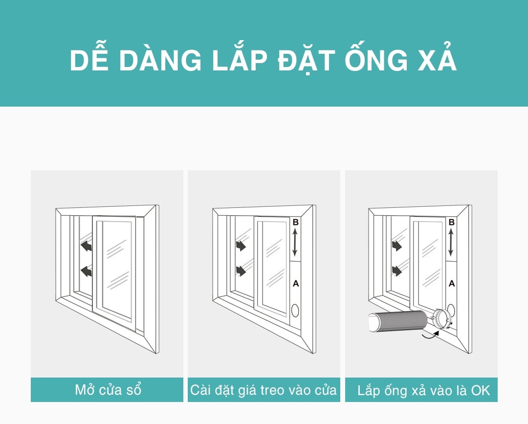 Sản phẩm mua về sẽ có bộ ống thoát hơi nóng, khách hàng chỉ cần để sản phẩm cạnh 1 cửa sổ, để hơi nóng thoát ra bằng đường ống thải là có thể sử dụng.