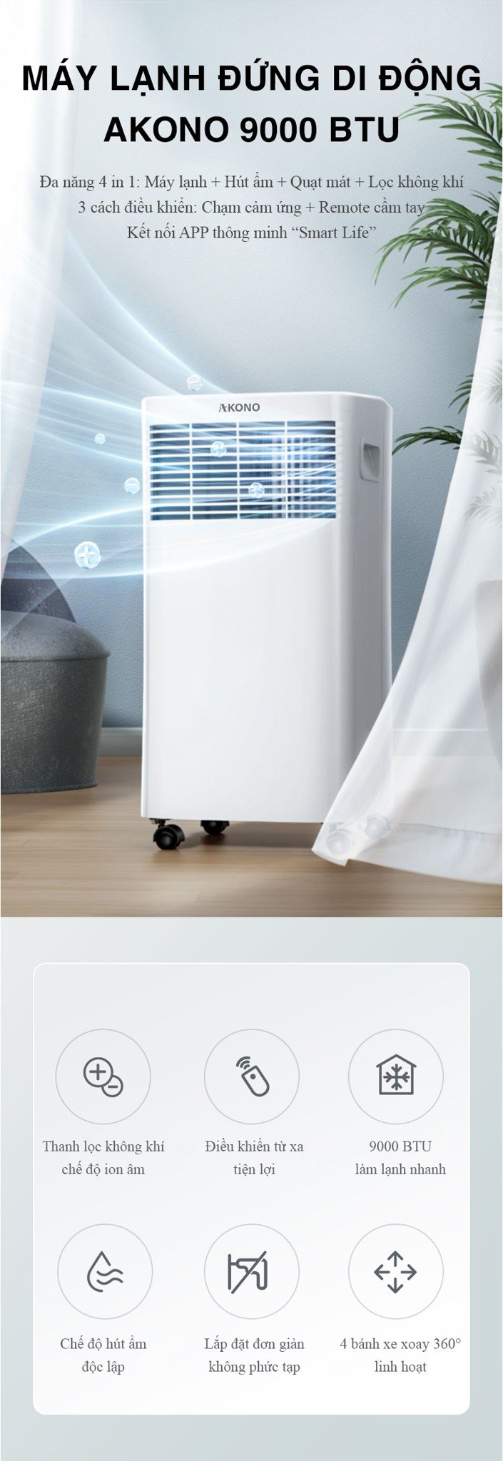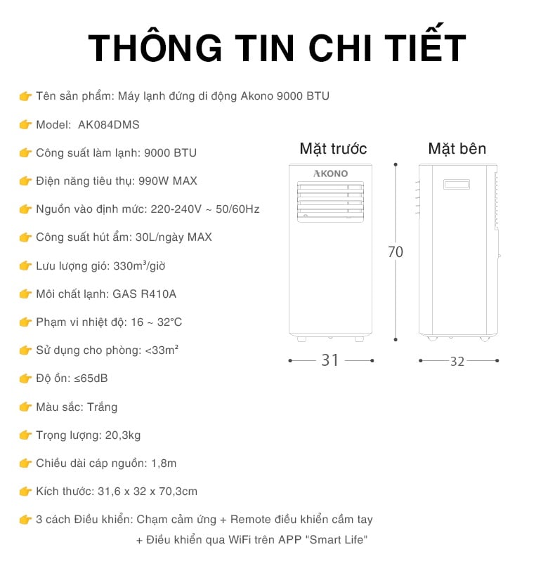 Thông số kỹ thuật Điều hòa Akono Portable Air Conditioner