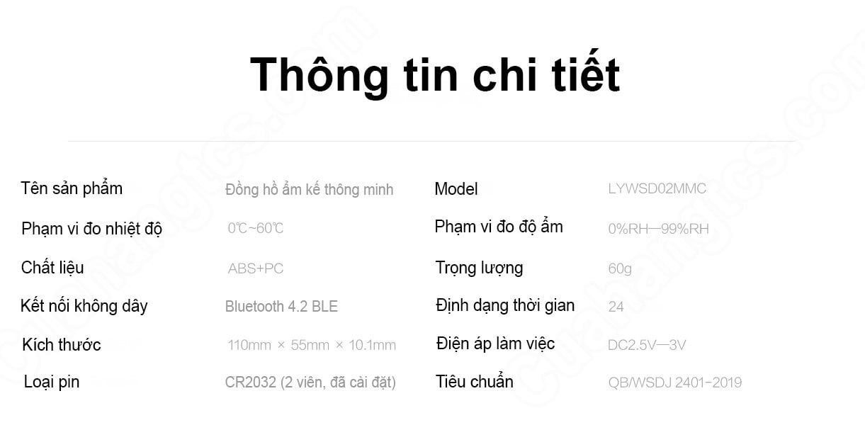 Thông số chi tiết Đồng hồ ẩm kế Xiaomi thông minh