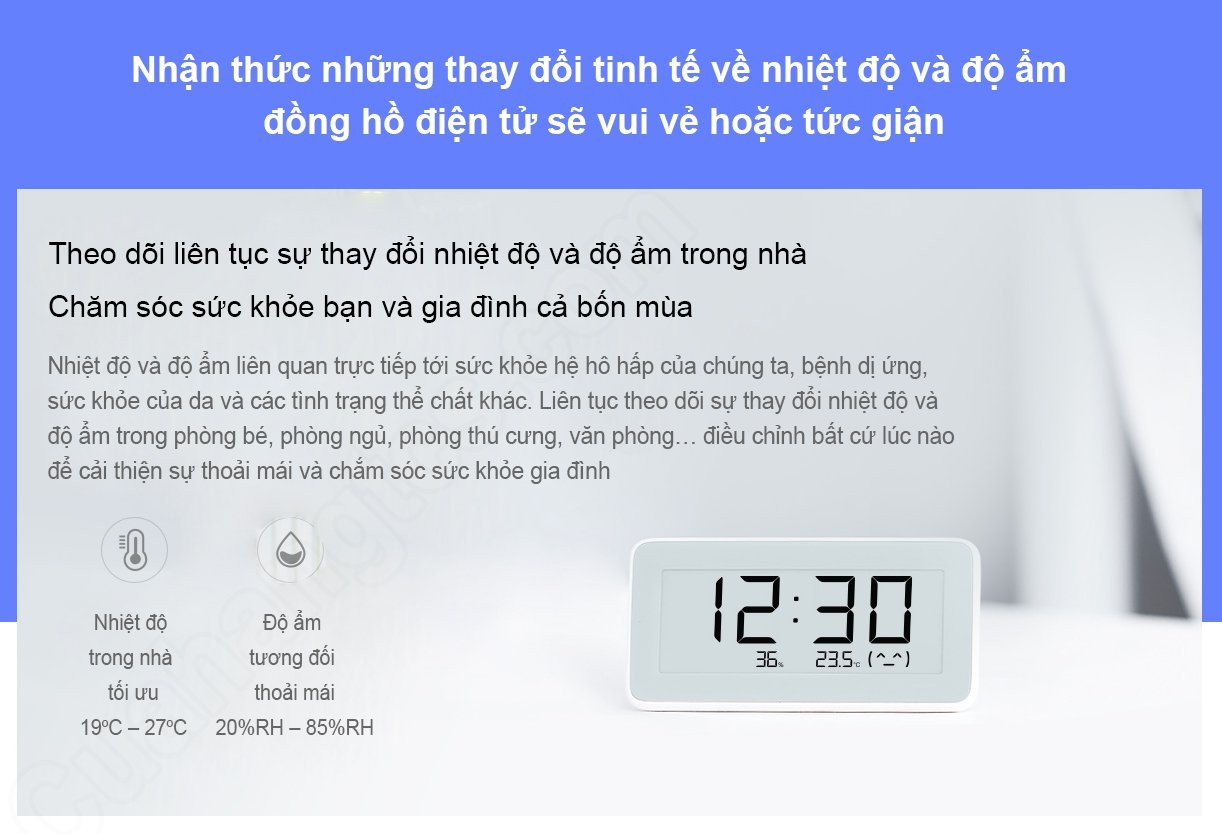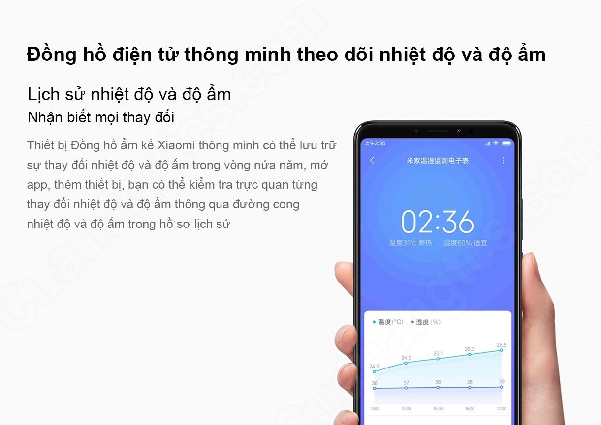 ✔ Là đồng hồ kiêm nhiệt kế, ẩm kế đến từ hãng Xiaomi