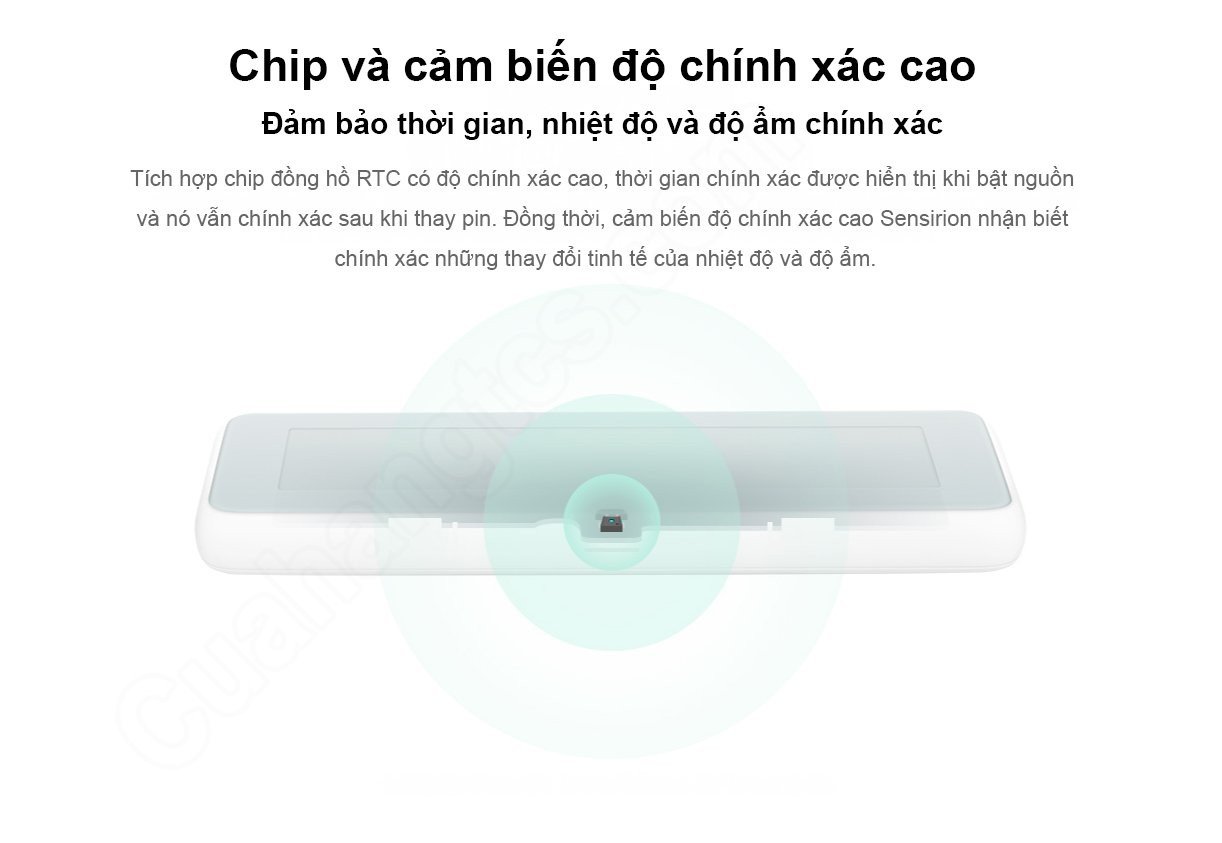 Đồng hồ tích hợp nhiệt độ và độ ẩm Mijia được trang bị chip đồng hồ RTC có độ chính xác cao cho thời gian hiển thị khi bật nguồn và sau khi thay pin vẫn vô cùng chính xác. Đồng thời đồng hồ thông minh còn được tích hợp cảm biến Sensirion có độ chính xác cao để nhận biết chính xác những thay đổi tinh tế về nhiệt độ và độ ẩm.