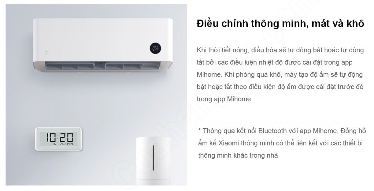 Đồng hồ Mijia Smart Digital Clock thông qua kết nối bluetooth có khả năng liên kết với các thiết bị thông minh khác trong nhà để cải thiện nhiệt độ và độ ẩm kịp thời như mở máy điều hòa hoặc máy lọc không khí. Cụ thể khi thời tiết nóng điều hòa sẽ tự động bật hoặc tắt nếu được cài các điều kiện nhiệt độ trong app Mijia.